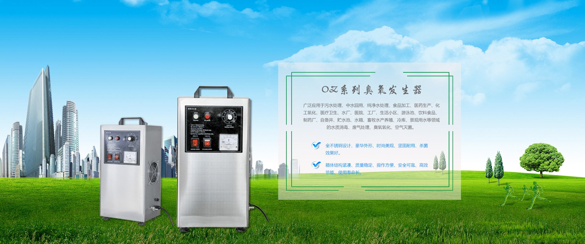 廣泛應(yīng)用于污水處理、中水回用、純凈水處理、食品加工、醫(yī)藥生產(chǎn)、化工氧化、醫(yī)療衛(wèi)生、水廠(chǎng)、醫(yī)院、工廠(chǎng)、生活小區(qū)、游泳池、飲料食品、制藥廠(chǎng)、自備井、貯水池、水箱、畜牧水產(chǎn)養(yǎng)殖、冷庫(kù)、景觀(guān)用水等領(lǐng)域的水質(zhì)消毒、廢氣處理、臭氧氧化、空氣滅菌。